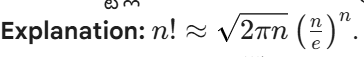 Q25: చాలా పెద్ద ఫ్యాక్టోరియల్స్ (ఉదాహరణకు 100!) ని సుమారుగా లెక్కించడానికి గణిత శాస్త్రంలో ఏ ఫార్ములాను ఉపయోగిస్తారు?