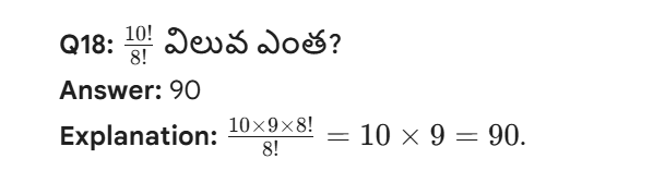 చాలా మంది విద్యార్థులు గూగుల్లో “what is factorial of 100” లేదా “व्हाट इज द factorial ऑफ 100” అని సెర్చ్ చేసి కాన్సెప్ట్ నేర్చుకుంటారు, కానీ ప్రాక్టీస్ చేయకపోవడం వల్ల పరీక్షల్లో తప్పులు చేస్తారు. కాబట్టి, ఆప్టిట్యూడ్ (Quantitative Aptitude) విభాగంలో మీరు ఎంత పర్ఫెక్ట్గా ఉన్నారో చెక్ చేసుకోవడానికి ఈ క్రింది Practice Questions (క్విజ్) ని సాల్వ్ చేయండి.