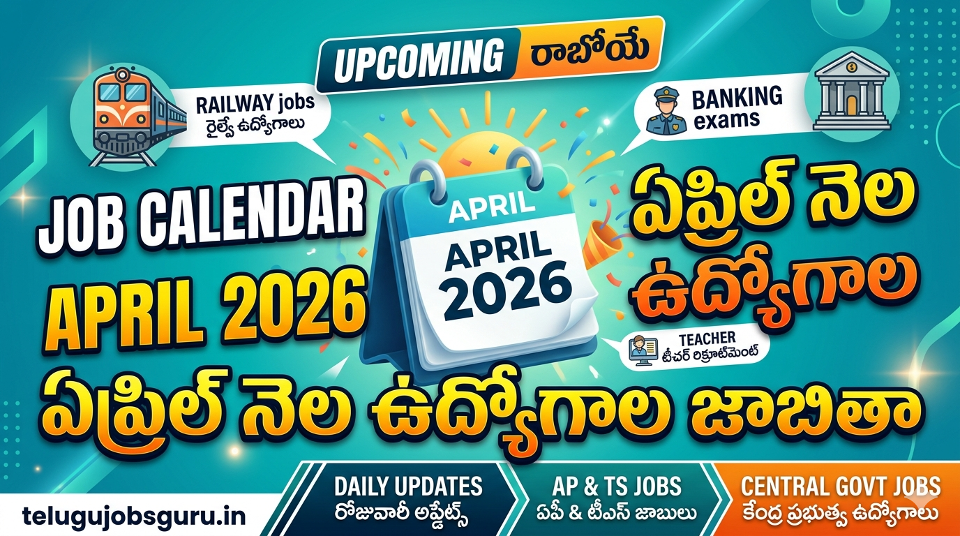 మార్చి నెల ముగుస్తోంది, ఏప్రిల్ 2026 లో నిరుద్యోగులకు భారీ శుభవార్తలు అందనున్నాయి. కేంద్ర మరియు రాష్ట్ర ప్రభుత్వాలు పలు కీలక నోటిఫికేషన్లను విడుదల చేయడానికి సిద్ధంగా ఉన్నాయి. TeluguJobsGuru పాఠకుల కోసం ఏప్రిల్ నెలలో రాబోయే ముఖ్యమైన ఉద్యోగాల క్యాలెండర్ ఇక్కడ ఉంది.